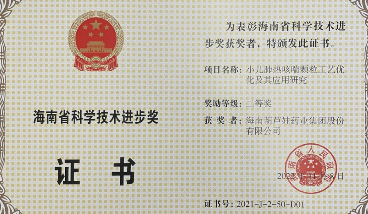 8868体育药业集团申报的专利“克咳片及其制备方法”荣获 第四届海南省专利奖金奖